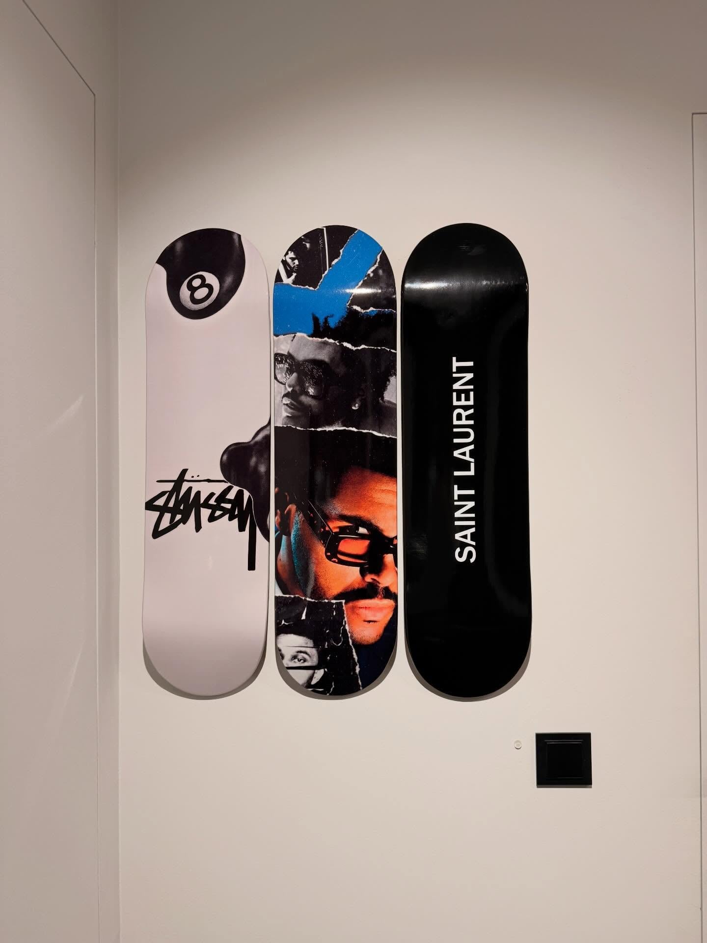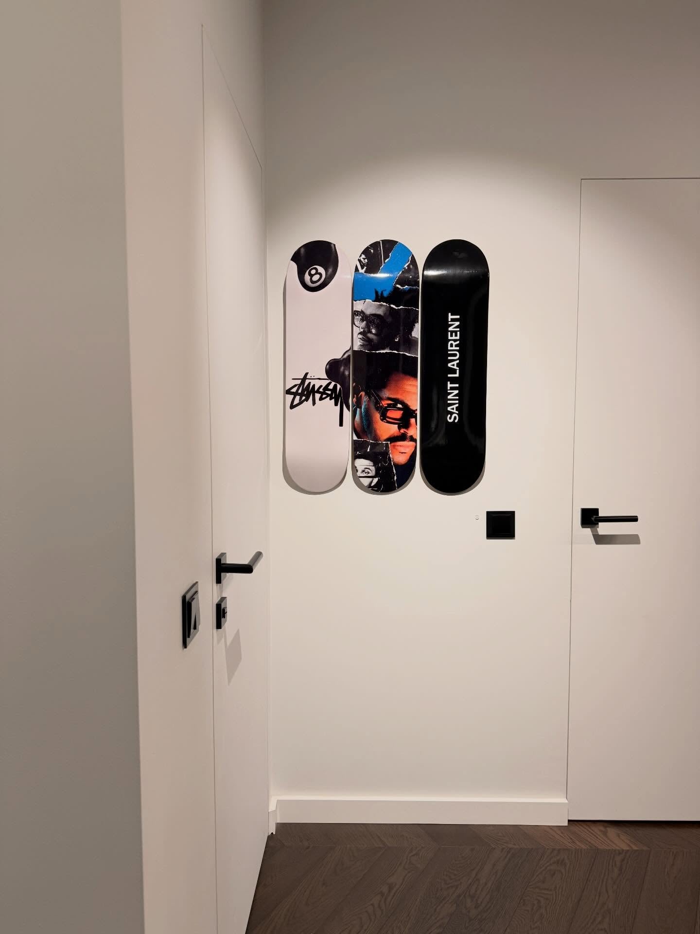 Each set is made to order and handcrafted using wood skateboard decks. While these decks are built from durable, high-quality materials, they are intended for decorative display only — trucks and wheels are not included, and they are not designed for actual skating.
